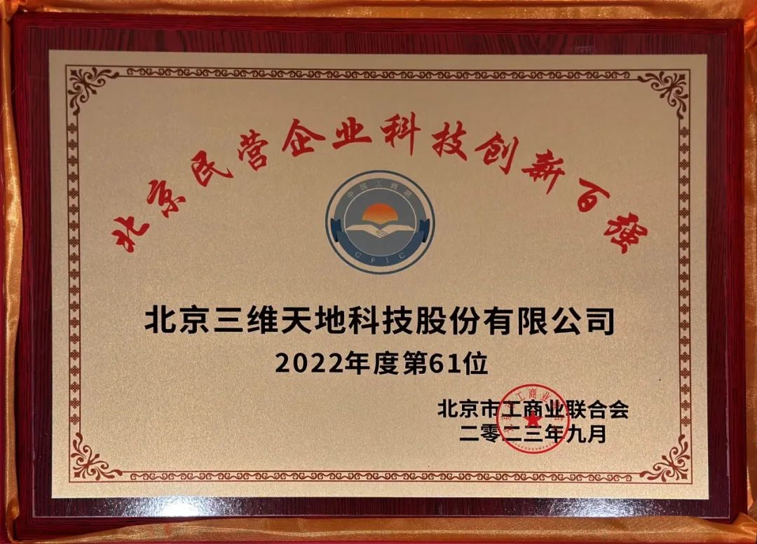 提振民營經(jīng)濟 推動高質(zhì)量發(fā)展 | 三維天地入選2023北京民營企業(yè)科技創(chuàng)新100強